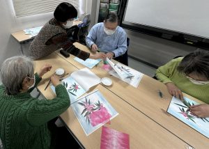 写真:センターでの「和紙ちぎり絵教室」受講生と