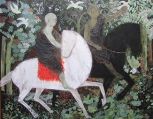 写真:岩井さんの作品「仏教伝来」(平山郁夫作品の和紙ちぎり絵模写)